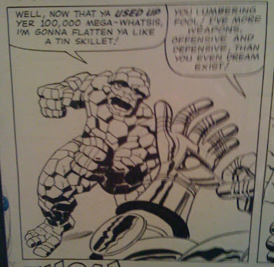 Todas las páginas que ilustran esta entrada están en manos de particulares. Algunas de ellas están a la venta y pueden comprarse, por supuesto a precios astronómicos. No tengo ni idea de si todas o algunas de estas páginas fueron devueltas a Kirby y vendidas luego legalmente por el matrimonio o por sus herederos, o si por el contrario algunas forman parte de las páginas que fueron "extraviadas" en los almacenes de Marvel y nunca devueltas a Kirby.